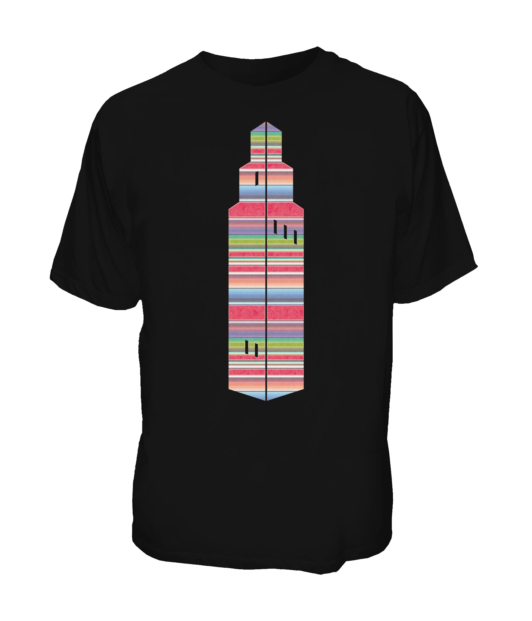 Dwntwn Zarape Tower tee is a full color center chest design.
